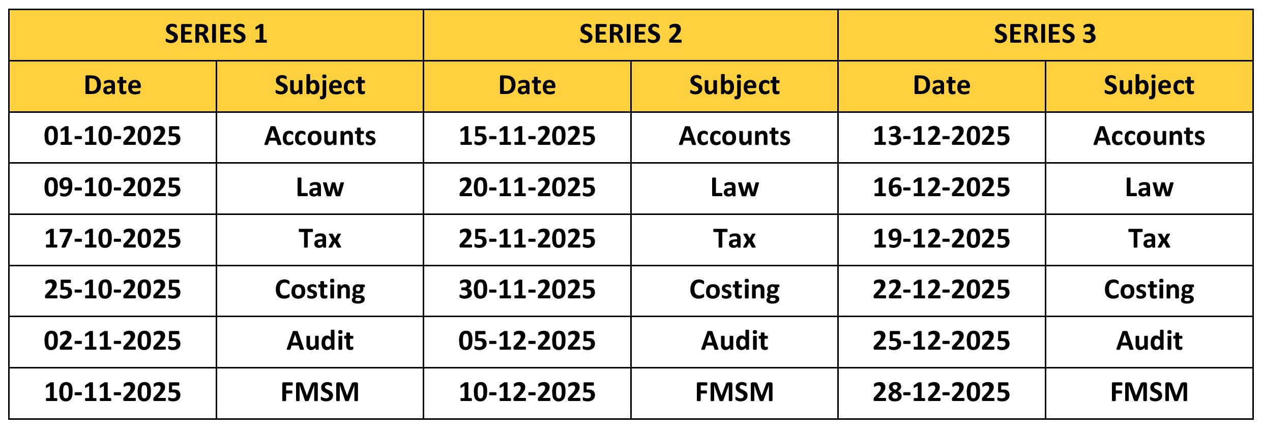 Test Series Details | Series 1 Start Date Papers will be uploaded by 1st October 2025 Series 2 Start Date Papers will be uploaded by 15th November 2025 Series 3 Start Date Papers will be uploaded by 13th December 2025 All Series Submission Date 30th December 2025 Last Submission Date for Series 1, 2 & 3 |