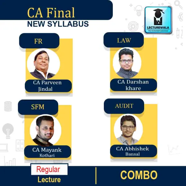 CA Final Group-1 Combo (FR + SFM + AUDIT + LAW) Regular Course By CA Parveen Jindal, CA Abhishek Bansal, CA Mayank Kothari & CA Darshan Khare : PEN DRIVE / ONLINE CLASSES.