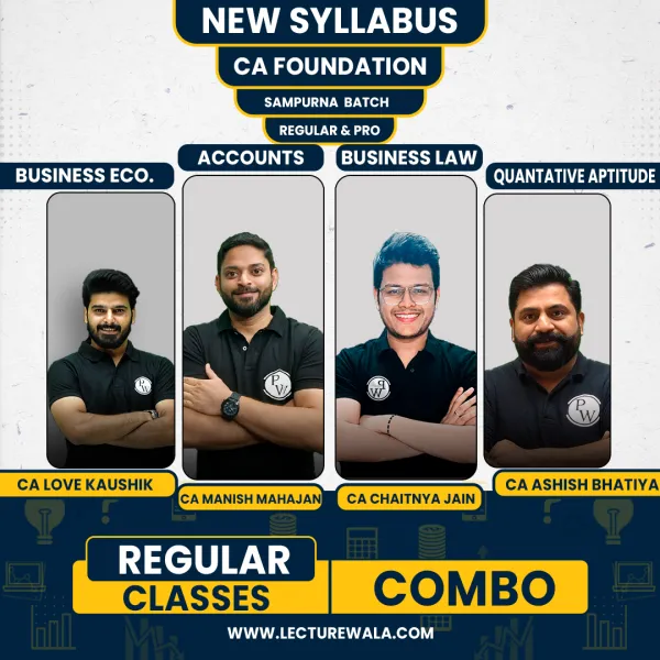 More Details | 01.This Batch is for CA Foundation January 2026 Attempt. 02.Start Date - 28 August 2025 03.End Date - 31st Jan 2026 04.Classes will be LIVE & RECORDED classes are available with unlimited views. 05.The Syllabus will be completed by November 2025. 06.Free E-books to all subjects. 07.Doubt Solving platform. 08.100% of the syllabus will be covered as per the new scheme. 09.Class Notes and DPP will be Provided. 10.Mentorship will be provided. 11.Every Sunday a Practice Test will be sent to the student for 2 subjects. 12.For App/Web Navigation the latest Feature Updates & Student Support please subscribe to our Support YouTube channel: https://www.youtube.com/@pwstudentsupport 13.The registration fee is included in the price of the batch which is showing on the website. The breakup of registration fee will be mentioned on invoice. You may be provided with access to Notes, PYQ’s. Mock Test Papers, AITS Test Series, Previous year batches & other materials, the access can vary depending on the batch you purchase, so that exact details might change from one batch to another. |