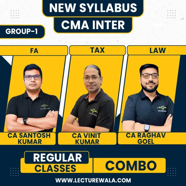 CMA INTER GROUP 1 New Syllabus CA/CMA Santosh Kumar Financial Accouting ,Professor Vinit Kumar Direct And Indirect Taxation,CA Raghav Goel Business Laws And Ethics CMA INTER GROUP 1